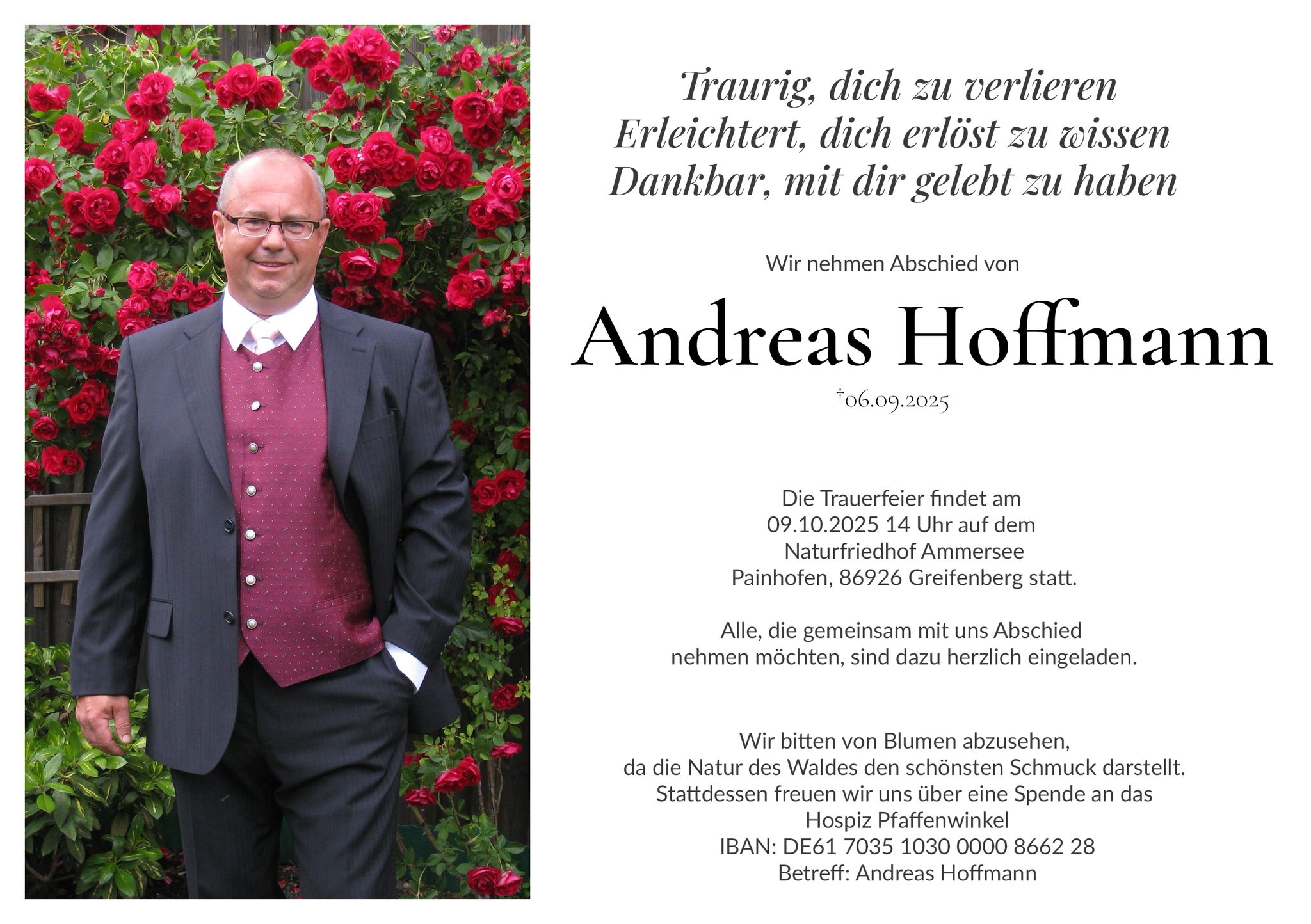 Herr Hoffmann ist im September seiner schweren Krankheit erlegen. Die Beisetzung erfolgte vor wenigen Tagen am Ammersee, den Andreas so geliebt hat.